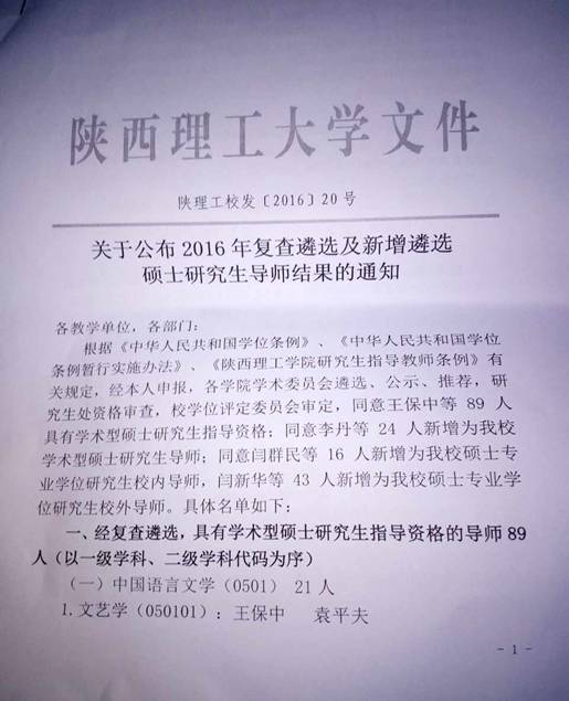 2016年9月20日,陕西理工大学下发文件(陕理工校发[2016]20号)《关于公布2016年复查遴选硕士研究生导师结果的通知》,根据《中华人民共和国学位条例》等文件有关规定,经本人申请,公司遴选、公示、推荐,研究生处资格审查,公司学位评定委员会审定,89人获得具有学术型硕士研究生指导资格,59人获得硕士专业学位研究生导师(校外导师43人),其中学科教学(数学)导师4名(校内1名,校外3人)。公司赵临龙教授列为校外导师,这对公司教育硕士(学科教学(数学))硕士点建设,将起到积极推动作用。