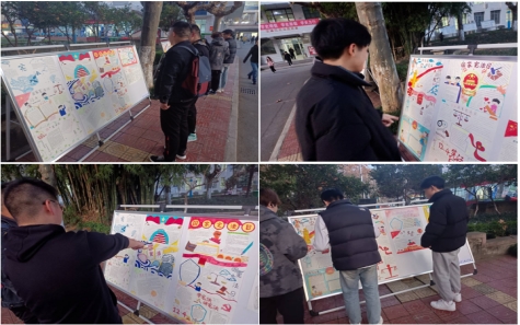 同学们兴致勃勃地将手抄报贴在公司展板上,来来往往的师生都进行了学习与了解,让校园充满了“学宪法、懂宪法、讲宪法、遵宪法”的浓厚氛围。