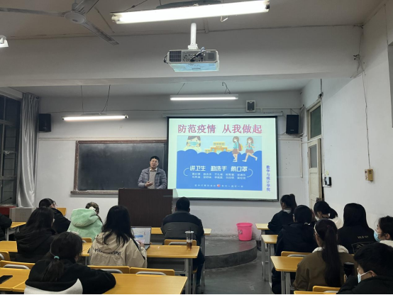 董婷瑜、刘佩和马勇首先给同学们介绍了国内疫情的发展情况,特别针对西安市的疫情给大家进行了讲解,让大家充分认识到了目前疫情发展的严峻形势。同时提醒同学们尽量在校内活动,非必要不外出,宿舍勤通风,勤洗手,积极戴口罩,切实做好疫情下的个人防护。