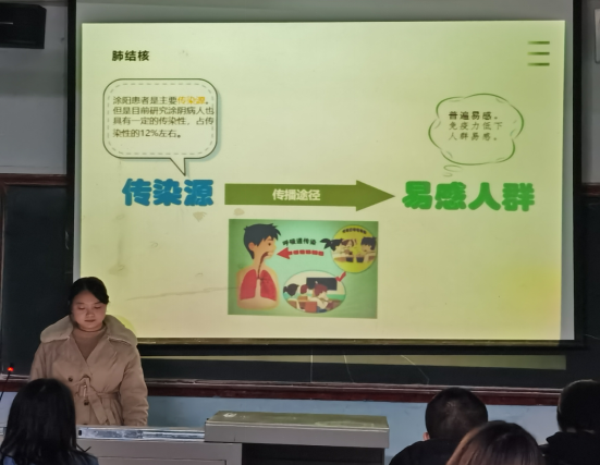 培训会上,校医龚晨针对流行性感冒、肺结核、诺如病毒感染性腹泻、麻疹、水痘、新冠肺炎等常见传染病展开讲解,重点讲述了每种传染病的发病机理、传播途径及防御措施。