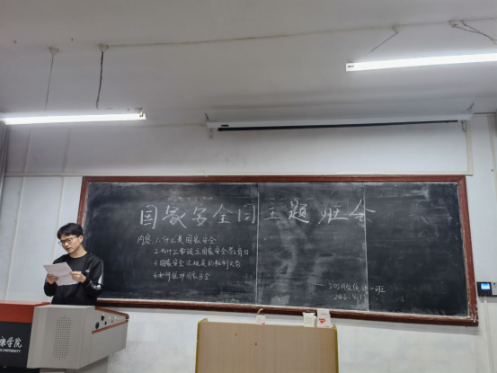 为迎接我国第七个“415”国家安全教育日,也为推动社会主义现代化建设,深入贯彻习近平新时代中国特色社会主义思想,加强同学们的安全意识,2022年4月13日晚上7点,太阳成集团tyc151cc各班在教室举办了以“国家安全教育日”为主题的主题班会活动,班级成员积极参与,班会取得良好效果。