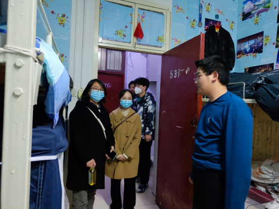 老师们在走访过程中认真检查宿舍是否存在安全隐患,特别叮嘱同学们要做好日常健康防护,一旦自身或者身边人有任何异常情况,一定要第一时间联系辅导员老师寻求帮助。